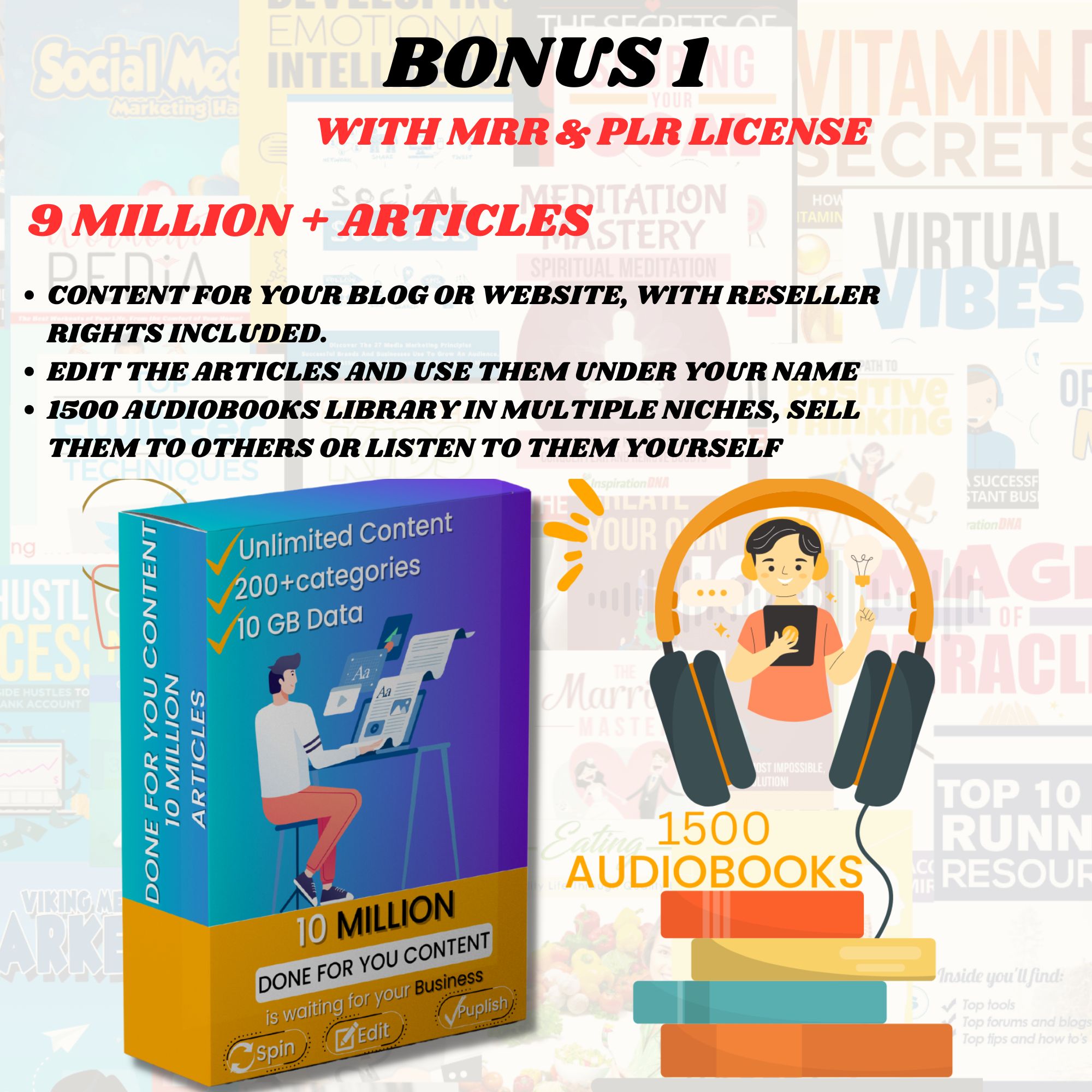 Content Empire Mega Bundle, 300K+ ebooks, white label license, 9M PLR articles, 1,500 audiobooks, royalty-free music, HD stock videos, social media templates, Canva course, 1M+ design & editing assets, ChatGPT & MidJourney prompts, resell rights, digital business toolkit, instant access