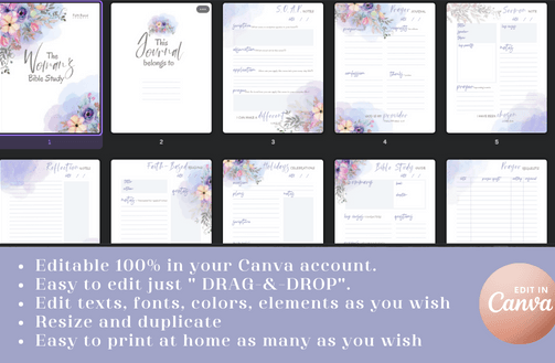 All-in-One Faith Journal A peaceful space for prayer, Bible study, gratitude, and reflection. Includes 120 editable pages, SOAP study method, scripture cards, and verse bookmarks—perfect for quiet time and spiritual growth.