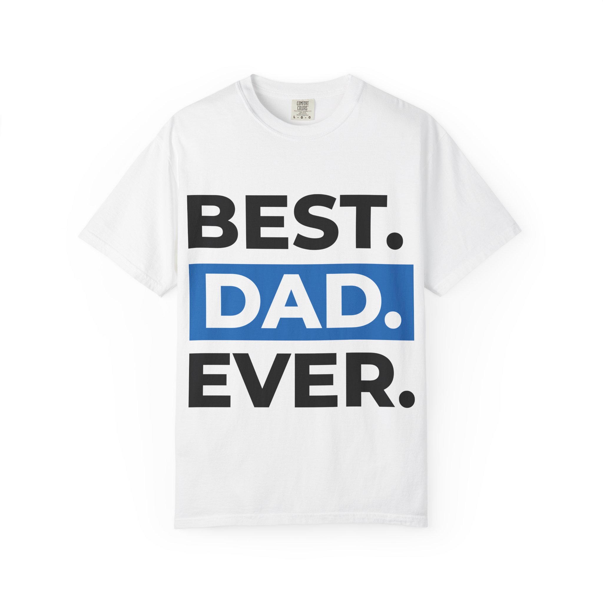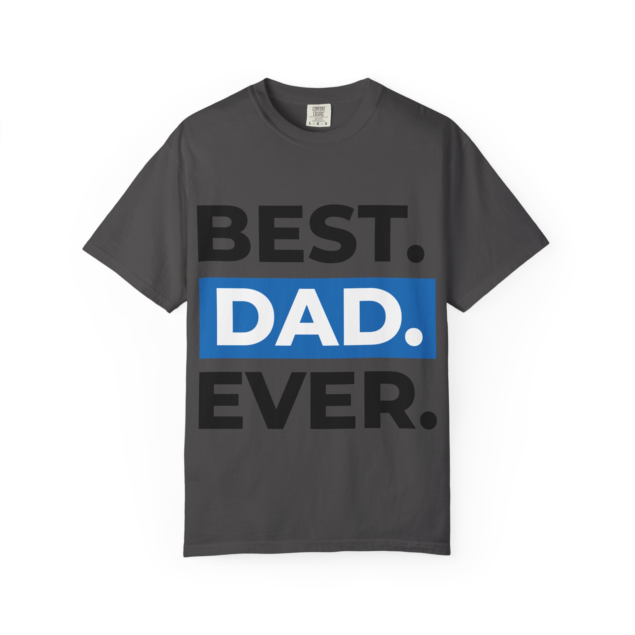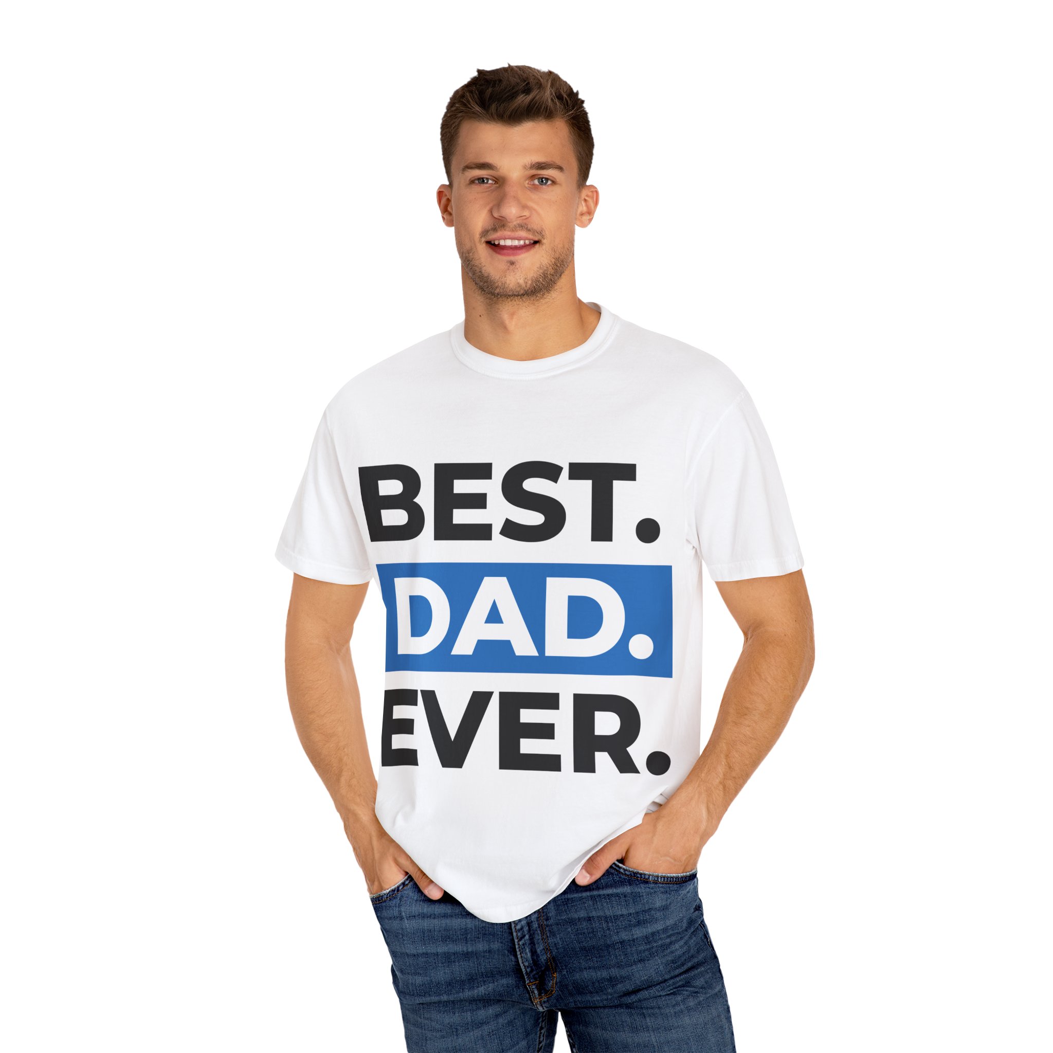 This relaxed-fit garment-dyed tee carries a bold, heartfelt message in clean, modern type: “BEST. DAD. EVER.” The print uses strong black lettering with a single blue highlight behind the word “DAD,” giving the design a confident, sincere look. The midweight, 100% ring-spun cotton feels broken-in from day one thanks to the garment-dye process and pre-shrunk construction. Tubular knit and double-needle stitching keep the silhouette simple and durable, while the sewn-in label and wide size range mean this shirt fits comfortably into everyday life — from backyard BBQs to casual weekend errands. It reads like a small, loud thank-you from kids or a partner, worn proudly by dads who prefer straightforward style and real comfort.