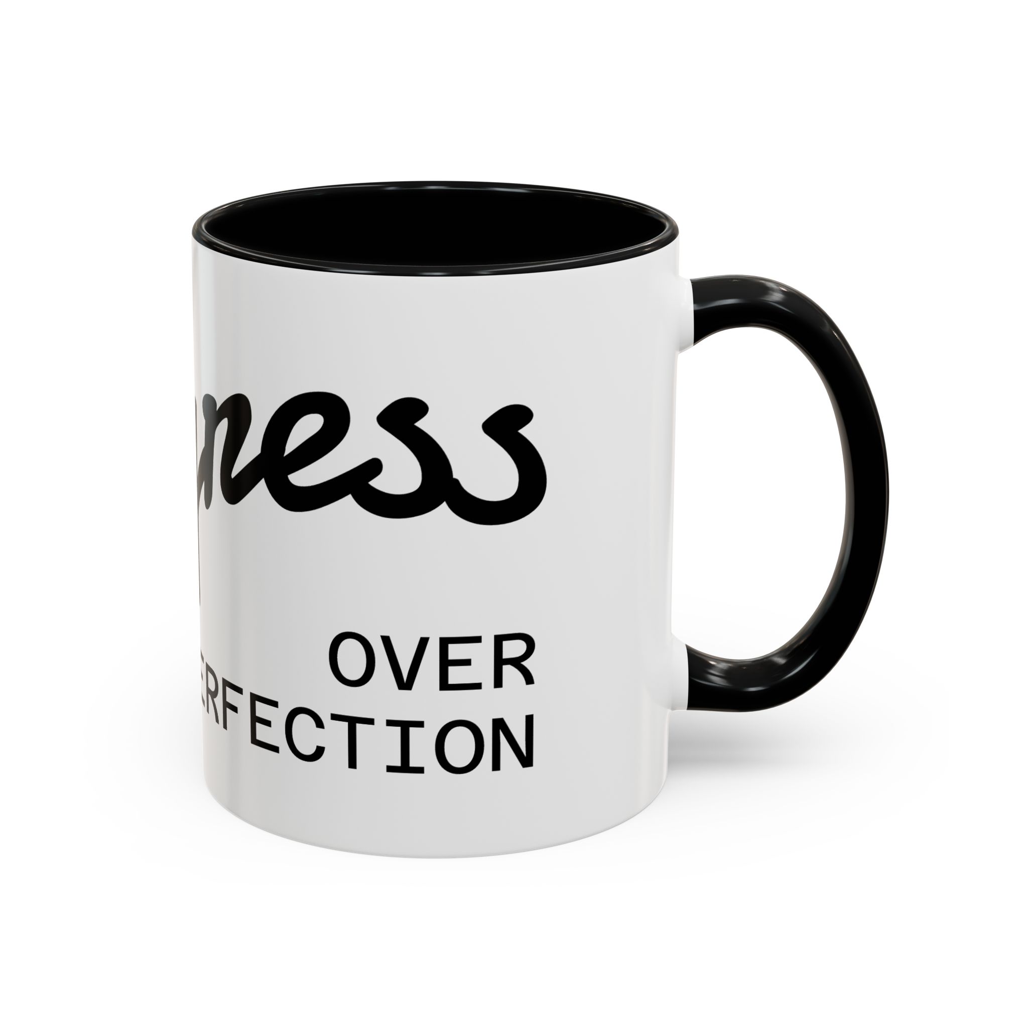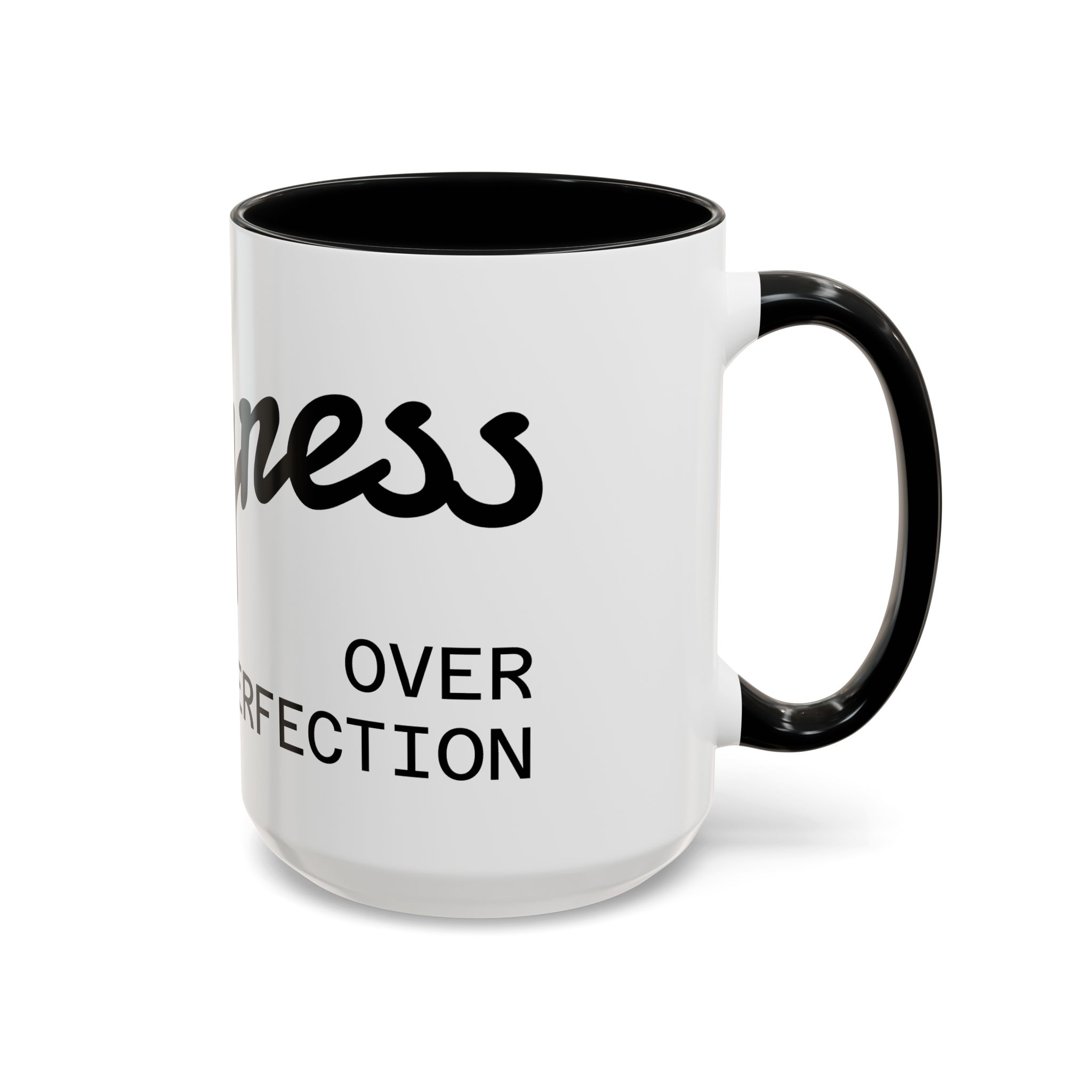 This ceramic coffee mug brings a little joy to the everyday ritual. Its bold black interior and handle create a striking contrast with the white exterior and the playful script design, turning a simple cup of coffee into a small moment of personality. It feels right on a cluttered desk, beside a stack of notes, or warm in your hands during an early-morning planning session. Built to handle daily use, it keeps its glossy finish and crisp print through the dishwasher and microwave, so the message stays as lively as your routine.