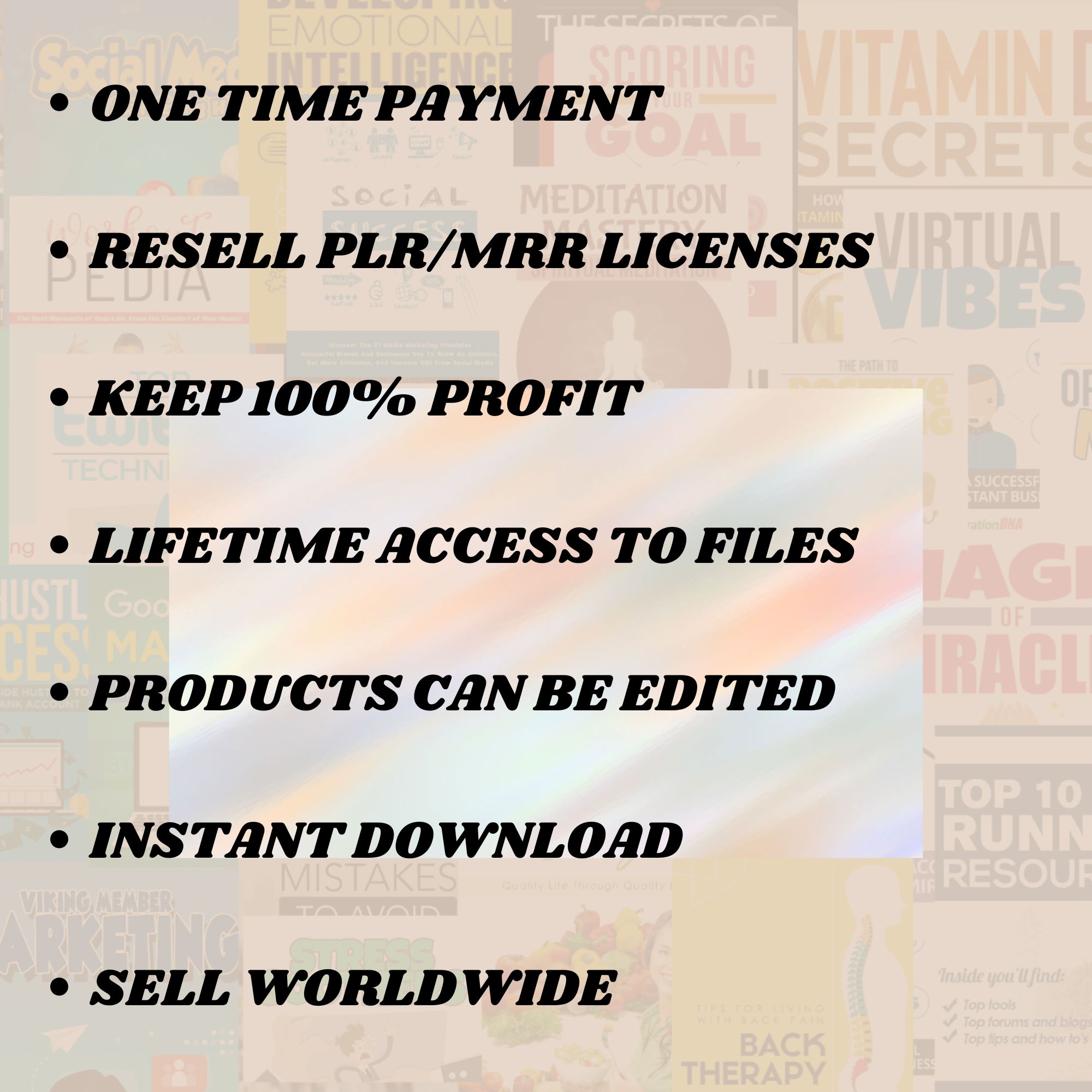 Build your digital empire with this massive bundle of 65,000+ high-value assets. Perfect for entrepreneurs, creators, and resellers, this pack includes eBooks, planners, videos, templates, and more—all with full PLR & MRR rights.