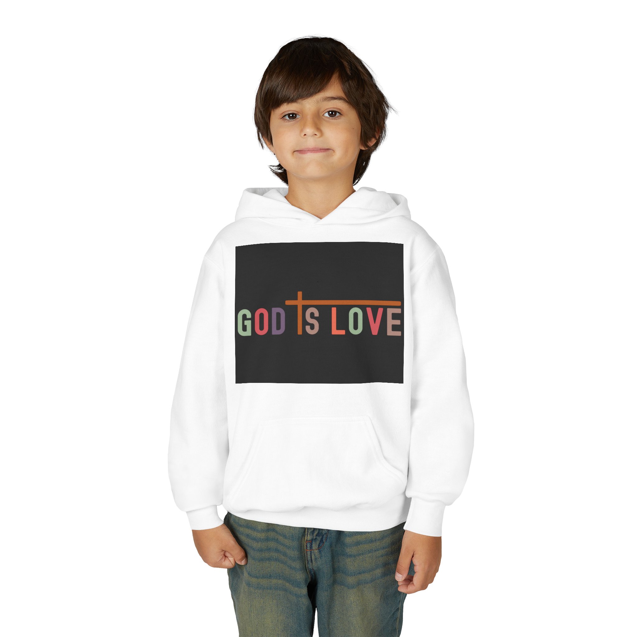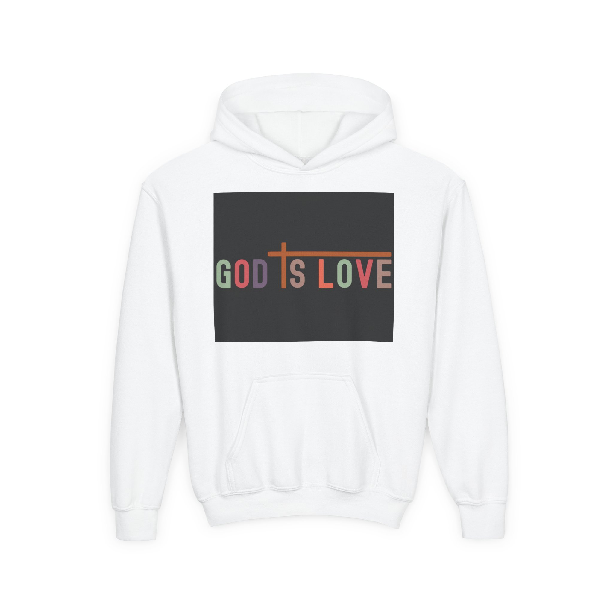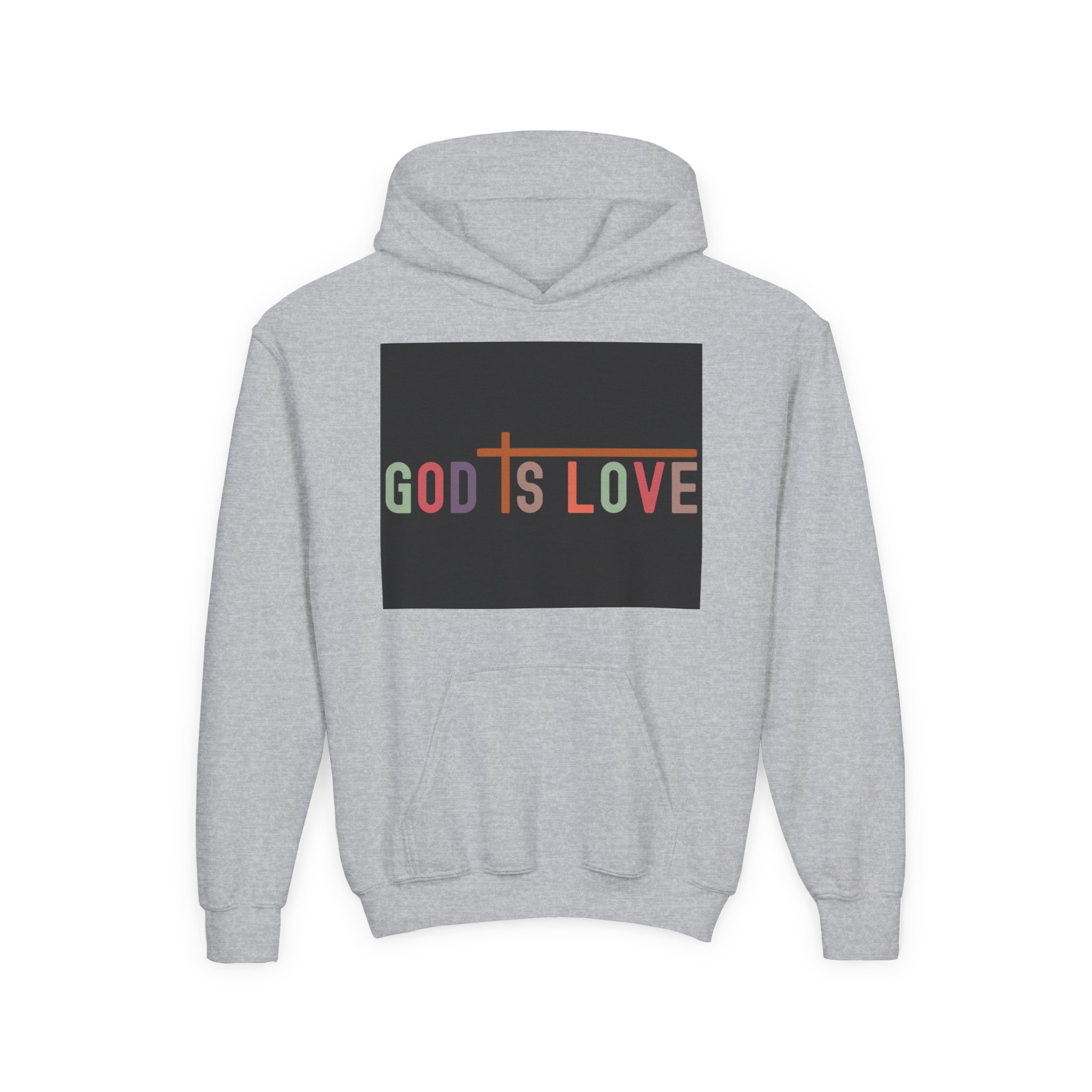 Soft, steady, and quietly confident — this youth hoodie carries a simple message: faith that comforts. A streamlined chest graphic reads GOD IS LOVE with a subtle cross integrated into the lettering, set against a dark backdrop that makes the muted, warm colors pop. The medium-weight fabric gives it structure without stiffness, and the roomy…